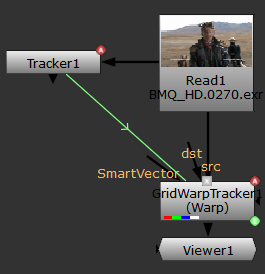 If you don't have access to SmartVector data or just prefer to use a familiar workflow, Nuke's Tracker node can drive grid shapes in GridWarpTracker. Tracker set up is slightly more painful, however. For simple shots, you might only need three or four tracks per grid, but creating tracking data for each vertices in the grid produces the best results.