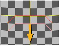 | An unlimited warp. | The same warp limited to a small area with grid lines. |