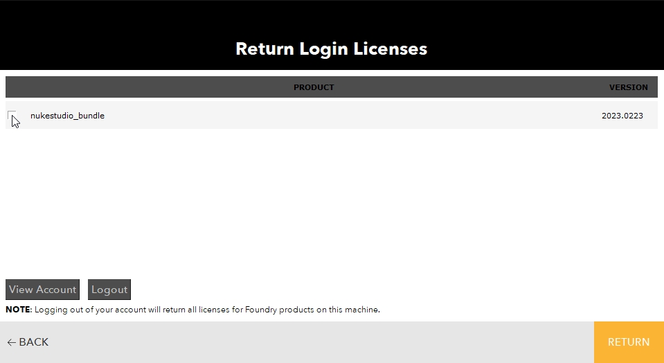 Tip: Returning a license allows you to activate it again without entering your Foundry login details.
