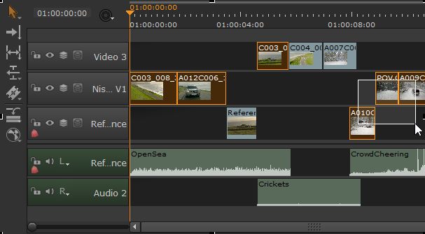 Select All Tracks Right or Left - all shots right or left of the target item are selected, regardless of which track they occupy.