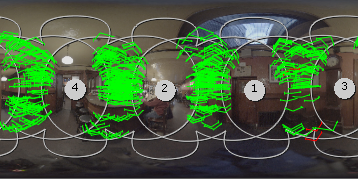 C_GlobalWarp uses feature detection, similar to that employed by C_CameraSolver, to locate features in the overlap regions of adjacent camera pairs. The warp then uses these features to find the best-fit gridwarp deformation of each input view to reduce ghosting.