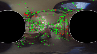 When the rig is solved, you can also view matches between overlapping cameras in latlong space by switching the Cam Projection dropdown to Latlong.