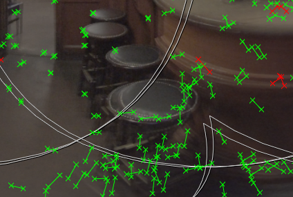Decreasing the Converge value to around 1.6 metres brings the stool into sharper focus. You can also see that the matched feature pairs overlay each other.