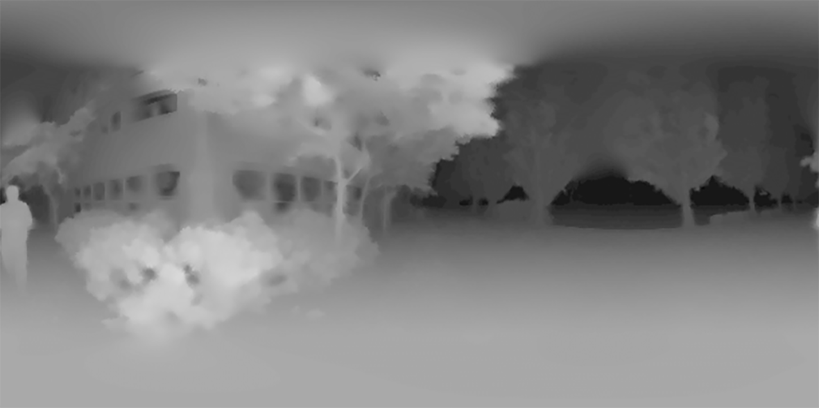 | 4. | Connect a Viewer to the Read node to view depth data. Brighter areas are closer to the rig and darker areas are farther away. |