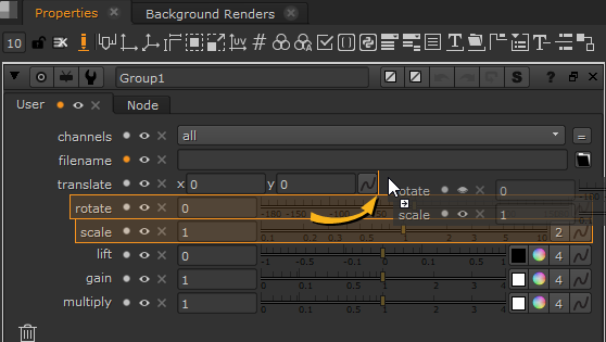You can drag-and-drop knobs between open node Properties panels or add your own using the knob icons listed at the top of the panel. You can also order, hide, customize, and delete knobs within the panel.