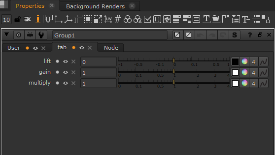 You can add tabs in the Properties panel to organize knobs into groups, just like Nuke's existing nodes. To add a tab: