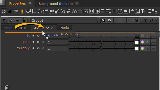 | 1. | Drag a Tab knob from the User Knob Editor and drop it into the Properties. |