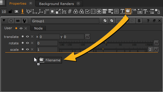 Drag-and-drop a new knob from the User Knob Editor onto the Group node's properties.