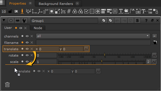 The components you can edit depend on the knob type. For example, a translate knob from a node within the Group allows you to edit the following: