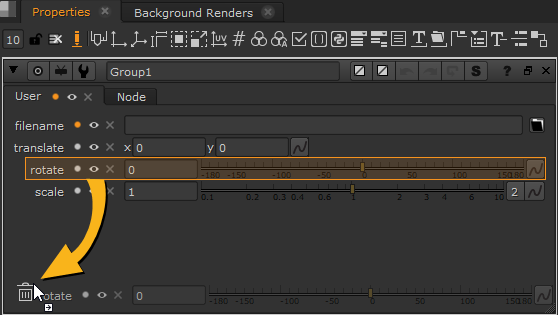 • Drag the knob to the bottom-left of the Properties panel and drop it into the trash icon.