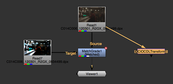 • Connect MatchGrade's Source input to the clip to which you want to apply the color transform.