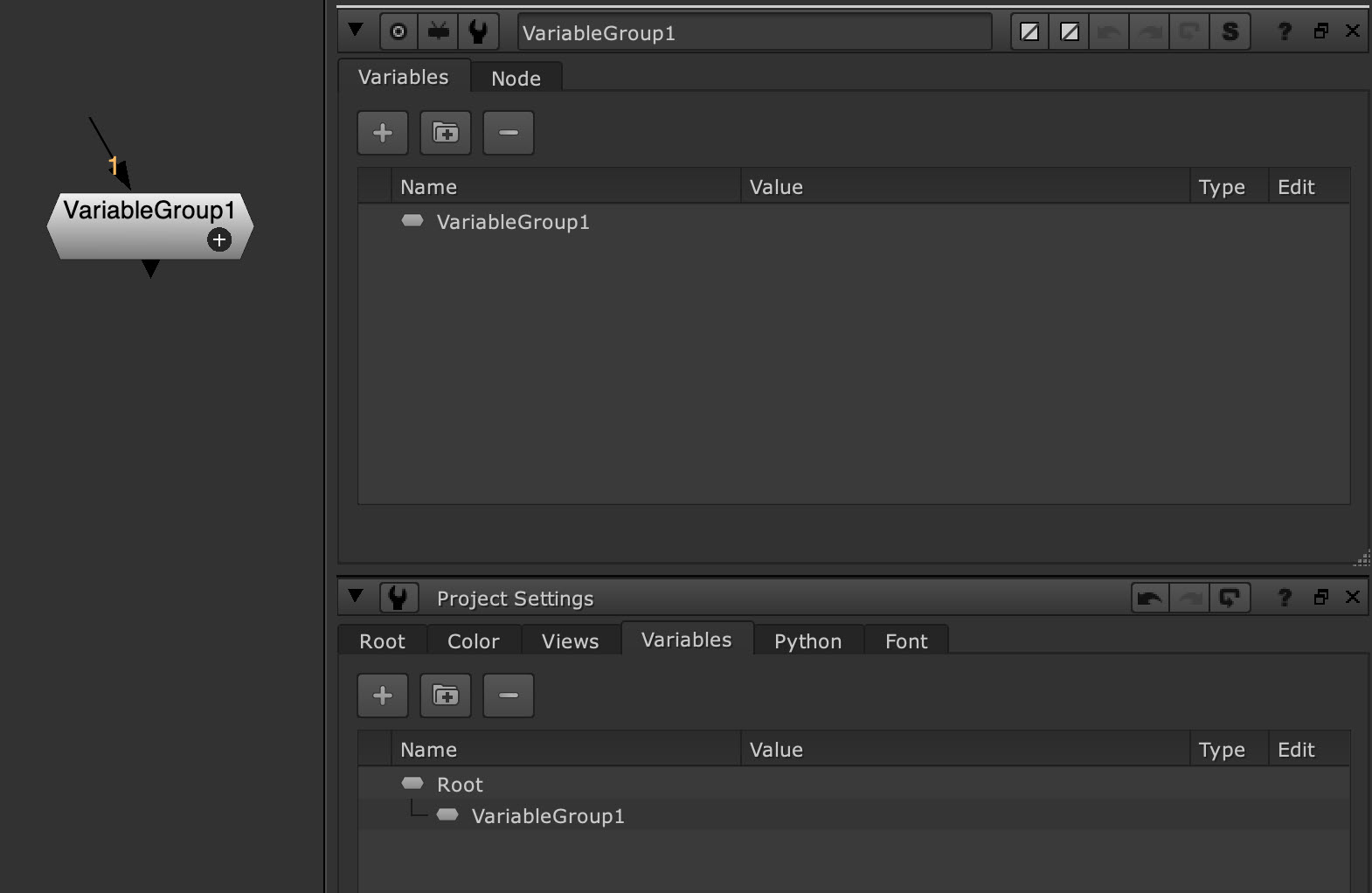Note:  Differences between Graph Scope Variables and the Graph State Variables in Katana: Although both provide similar functionality, VariableGroup nodes in Nuke automatically inherit GSVs from their parent(s) and allow these to be overridden to define a different or modified 'Scope' for the group.