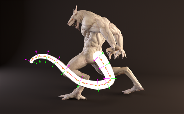 Here, an open spline is used to roto a creature's tail. |