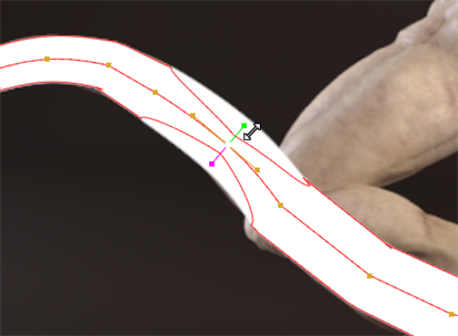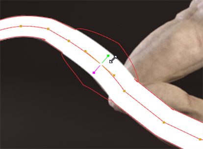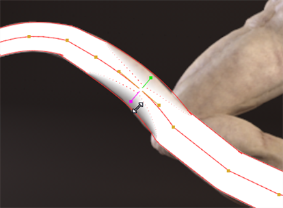 | 5. | You can adjust the thickness and feather of individual points on the spline by selecting the required points and using the handles displayed in the Viewer. |