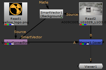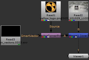 2.   Connect the VectorCornerPin's SmartVector input to either a SmartVector node or a Read node referencing the .exr files containing the motion vector data.