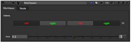3.   Select Views > Stereo > MixViews to insert a MixViews node into your script. This node displays a blend between two views in the Viewer, allowing you to check how elements in these views are aligned.