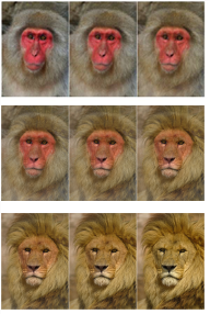An image of a monkey turning into an image of a lion. |