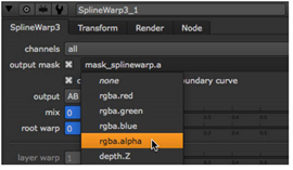 Use the output mask dropdown to select the channel where the traveling mask is stored, or use the mask_splinewarp.a default. |