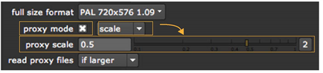 For the proxy scale, you only define a simple scale factor by which your images are scaled down whenever the proxy mode is activated. For example, you can use the scale factor of 0.5 to scale your images down to half the size.