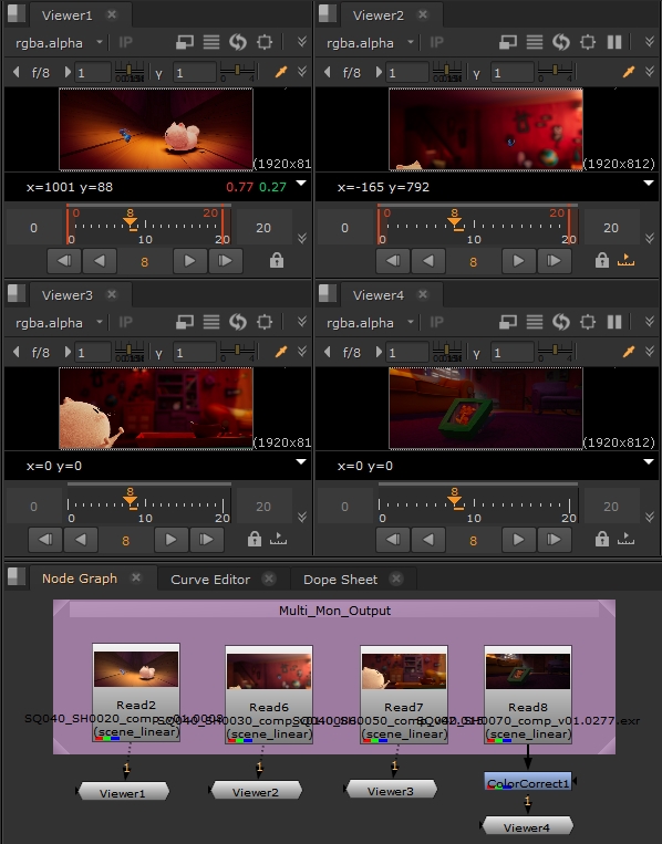 For example, using four Viewers and four Nuke Floating Windows, you could compare the format of multiple shots.
