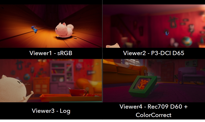 You can switch the Output Transform on each Viewer independently to check color consistency between the shots.