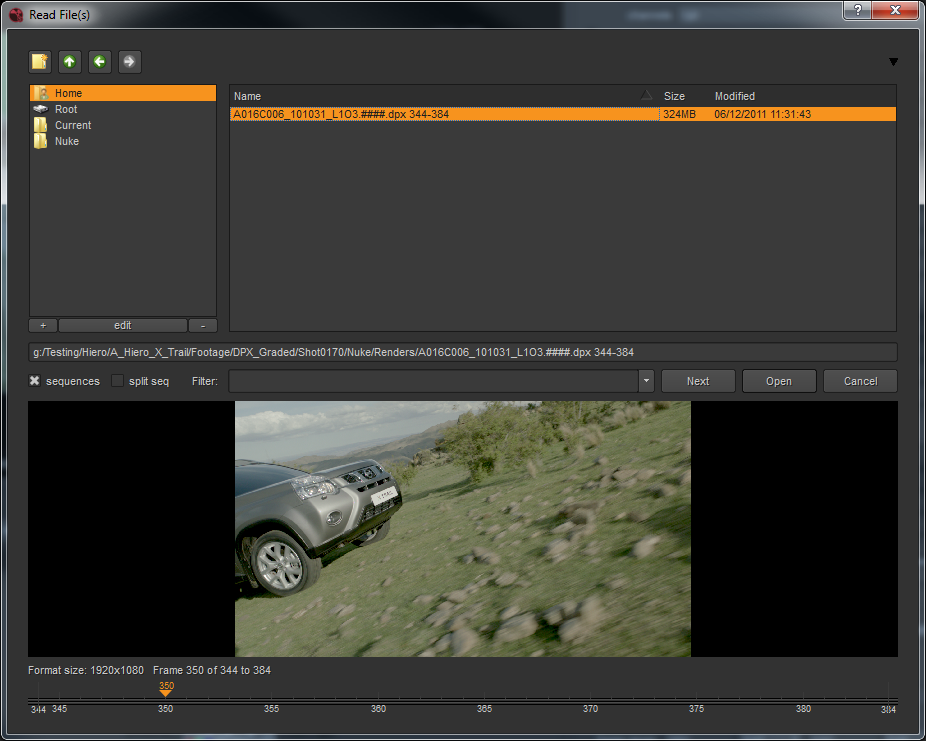 | 3. | Click Open to open the sequence in separate Read nodes. |