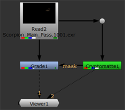 Cryptomatte creates ID mattes in applications such as Maya using organizational information available from a number of renderers including V-Ray and RenderMan. Nuke can then use the Cryptomatte plug-in to isolate individual mattes in the sequence and apply effects to only those areas of the image.