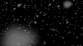 Creates an adjustable snow or rain particle system. Double-click the particle system to open its Properties panel and then click the S icon to display the contents of the group. The image shows the 3D particle system rendered through a ScanlineRender node. |
