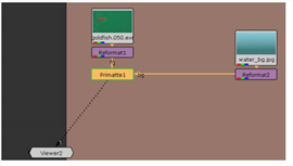 | 3. | Drag the bg connector from Primatte1 to the Reformat2 node, which supplies the background image for this example. The fg connector should be attached to Reformat1. |
