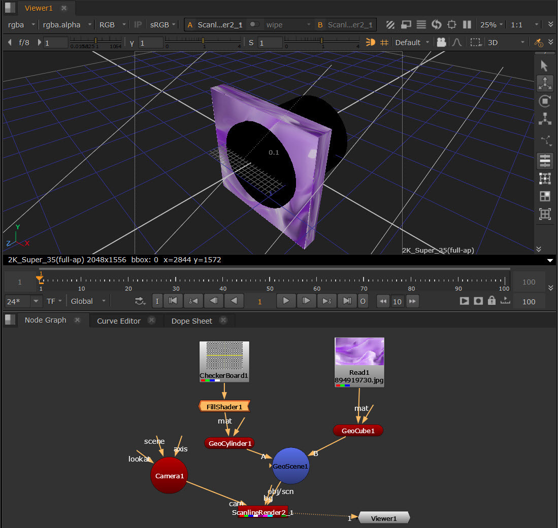 | 1. | Insert a FillShader node between the 2D image you’re using for the surface texture and the 3D object node that creates the surface. |