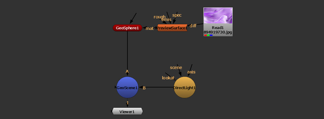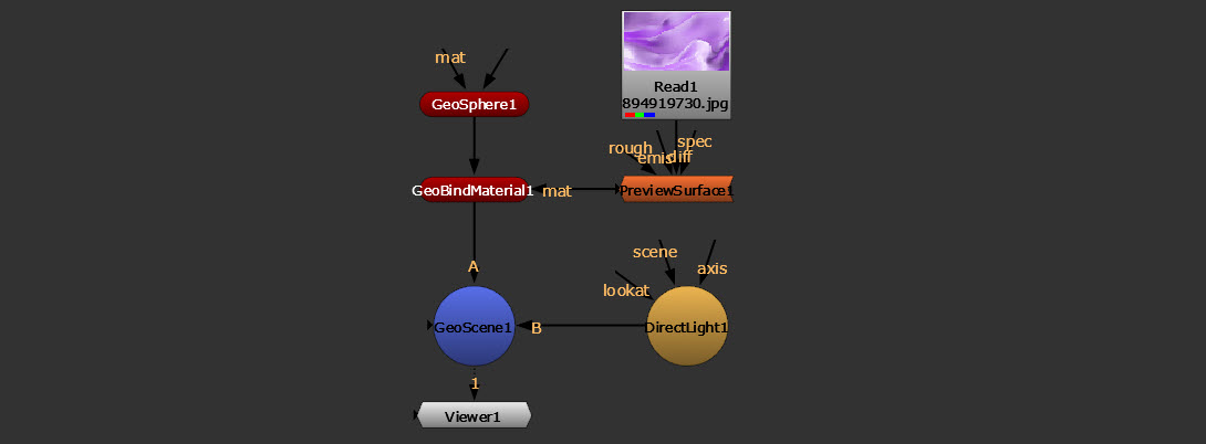 | 2. | Connect the unnamed input of the GeoBindMaterial node to your geometry (for example, a GeoSphere node). |