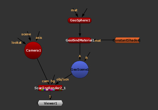 | 3. | Connect your shader, such as a ConstantShader node, to the GeoBindMaterial node’s mat input. See more information about different types of shaders below. |