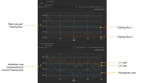 The loss values for each of the loss functions will be plotted on a second training graph on the progress tab called Loss Components Graph.