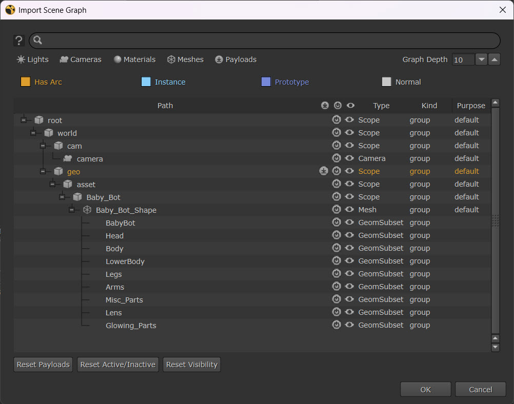 Note: To learn more about the concepts of payloads in USD, see Payloads and Deferred Loading.