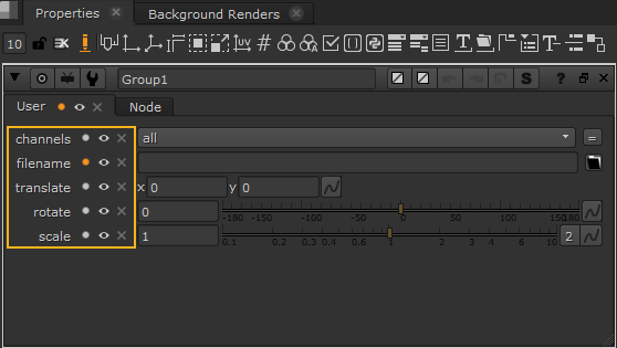 You can drag-and-drop knobs between open node Properties panels or add your own using the knob icons listed at the top of the panel. You can also order, hide, customize, and delete knobs within the panel.