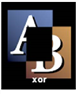 This is the reverse of the out operation. Only shows the areas of image B that do not overlap with the alpha of A. |