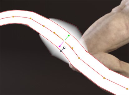 | 5. | You can adjust the thickness and feather of individual points on the spline by selecting the required points and using the handles displayed in the Viewer. |