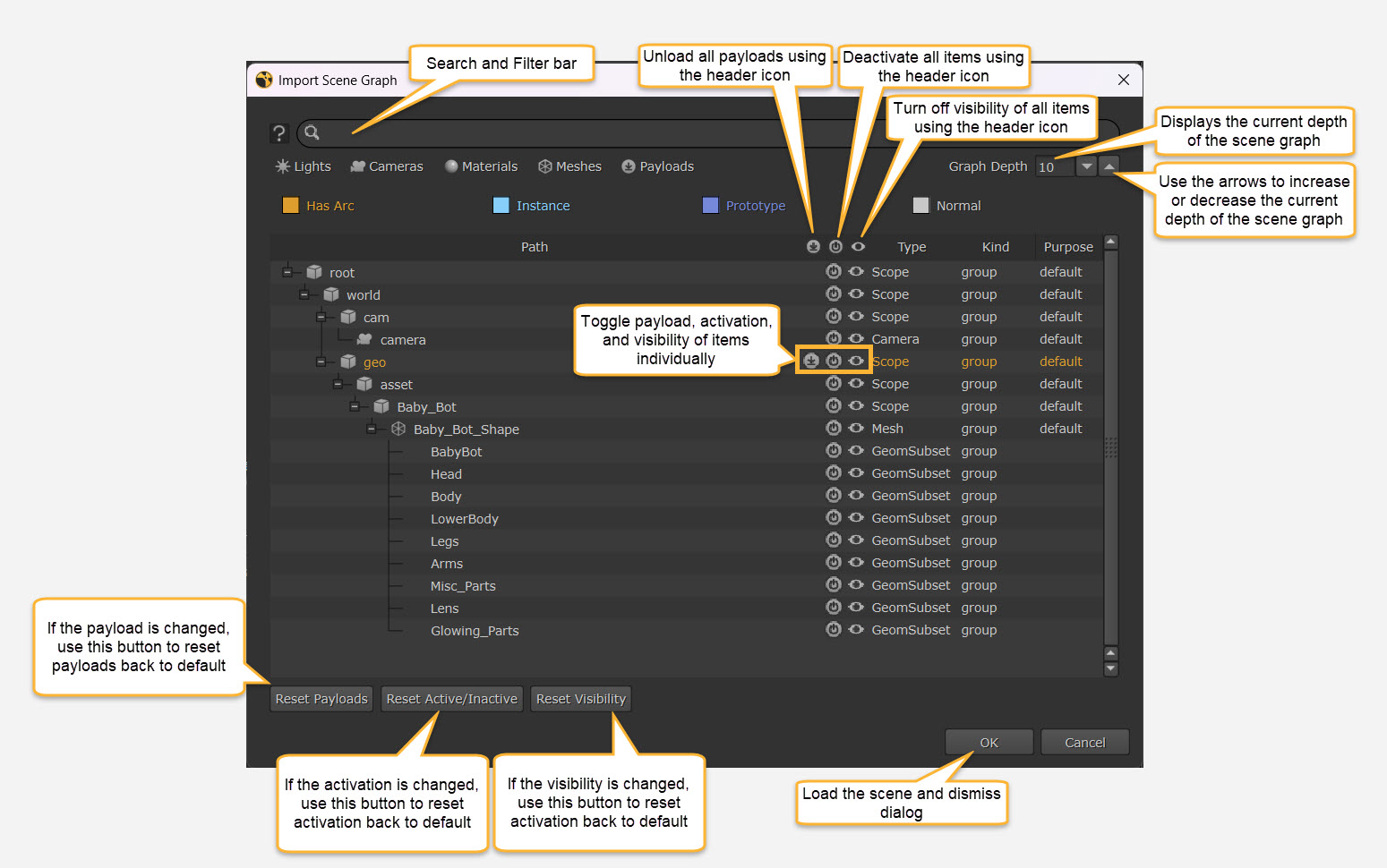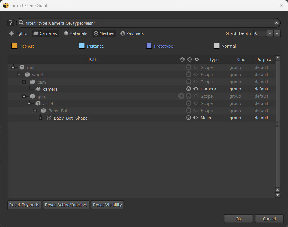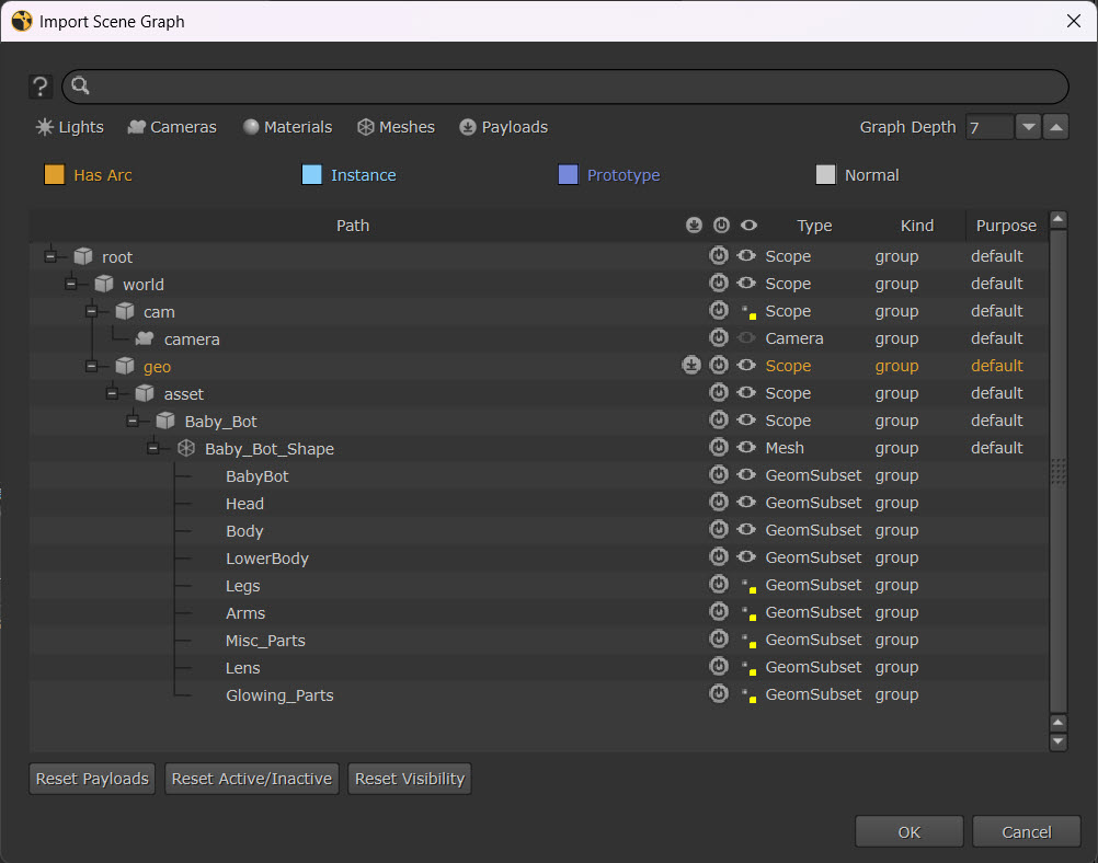 Note: To learn more about the concepts of payloads in USD, see Payloads and Deferred Loading.