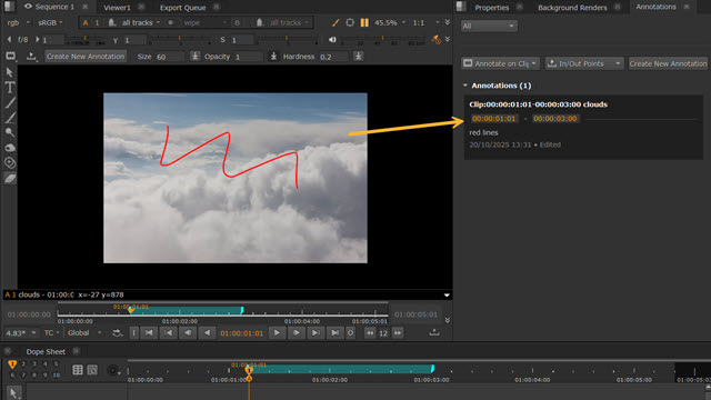 The Annotations Panel and Annotations Toolbar allow you to add comments and drawings to your clips and sequences in the Viewer.