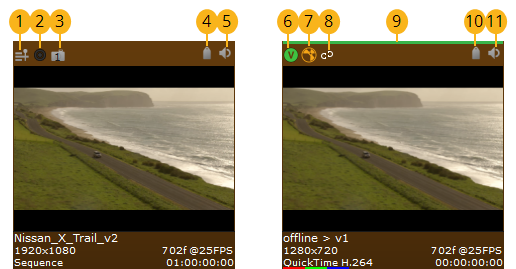 The clip's localization state, whether or not a local copy is saved to disk to improve playback performance. See Managing Localization for more information. |