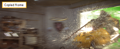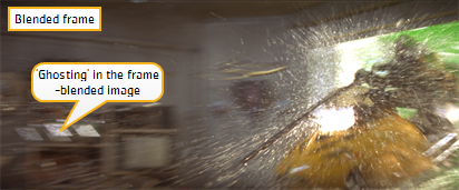 Here is an example of the difference between frame-copy and frame-blend interpolation. In the first frame of the figure below, you see a copy of the preceding frame. In the second frame, you see a new image generated by blending the previous and subsequent frames.