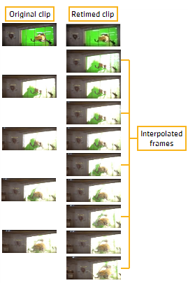 Time distortions that slow down a clip require the creation of additional, or interpolated, frames. For example, suppose you want to slow down the collision, shown in the clip below, by a factor of two. This requires the creation of one interpolated frame for every existing frame in the clip.