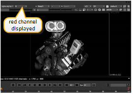 | 5. | To view individual color channels, press R (red), G (green), B (blue) or A (alpha). As you press each keyboard shortcut, the label at the top of the Viewer reflects the displayed channel. |