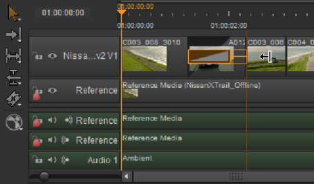 2. | Right-click and select Editorial > Add Transition > Dissolve or Audio Crossfade, or use the Ctrl/Cmd+T keyboard shortcuts, to add the dissolve icon to the edit. |