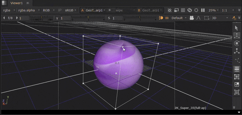 | 1. | Connect a GeoTrilinearWarp node downstream of your geometry. The bounding box will then be visible in the Viewer. |