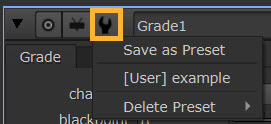To load a preset on a node, click the load node presets button and select your preset from the dropdown. User presets are your own personal presets, and shared presets can also be used by other users. |