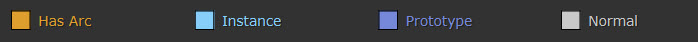 The Scene Graph has styling to help you visualize the hierarchy of your stage. Prims with Arcs, Instances and Protypes appear in different colors: