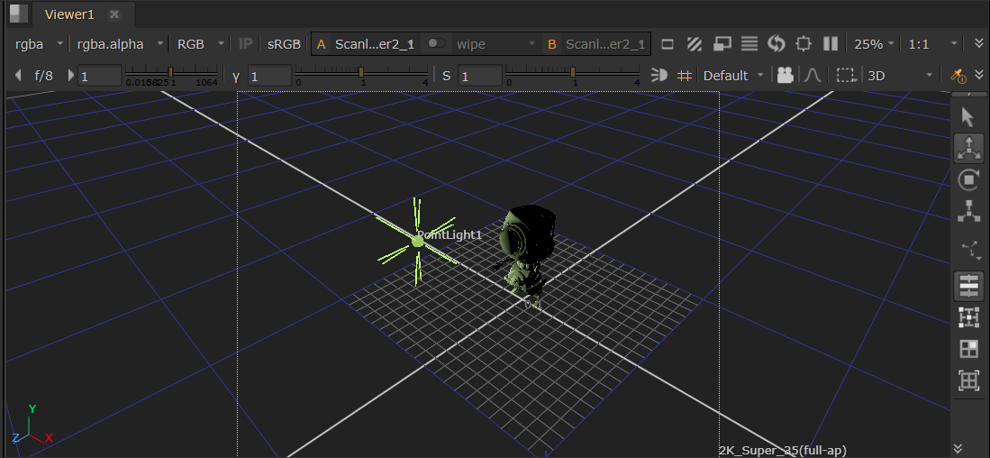 • The scene is then connected to a ScanlineRender node and the Viewer in order to view it. The Position tab includes Constrain and Xform options, and the Display tab allows you to change how the lights look in the Viewer. You can then use the transformation handles to transform the lights interactively in the Viewer. See more about how you can use the Viewer at Lights in the Viewer.
