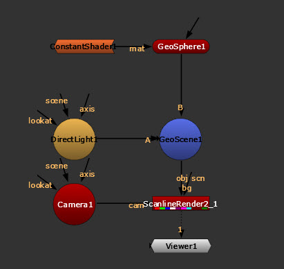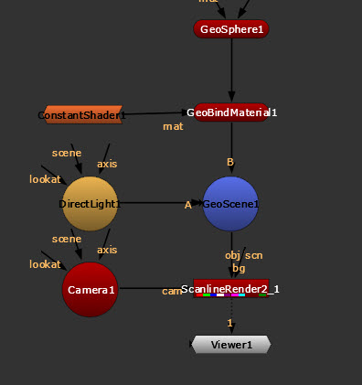 3.   Connect your shader, such as a ConstantShader node, to the GeoBindMaterial node’s mat input. See more information about different types of shaders below.