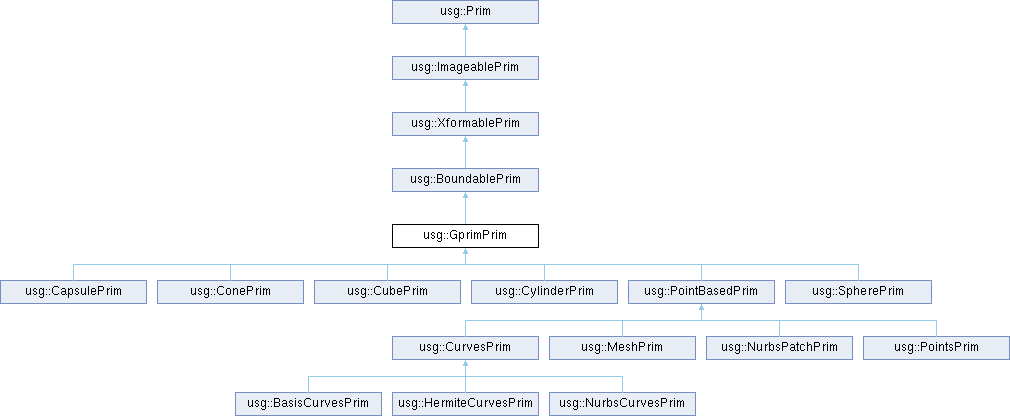 Reimplemented in usg::HermiteCurvesPrim, usg::MeshPrim, usg::NurbsCurvesPrim, usg::NurbsPatchPrim, usg::PointBasedPrim, usg::PointsPrim, and usg::SpherePrim.
